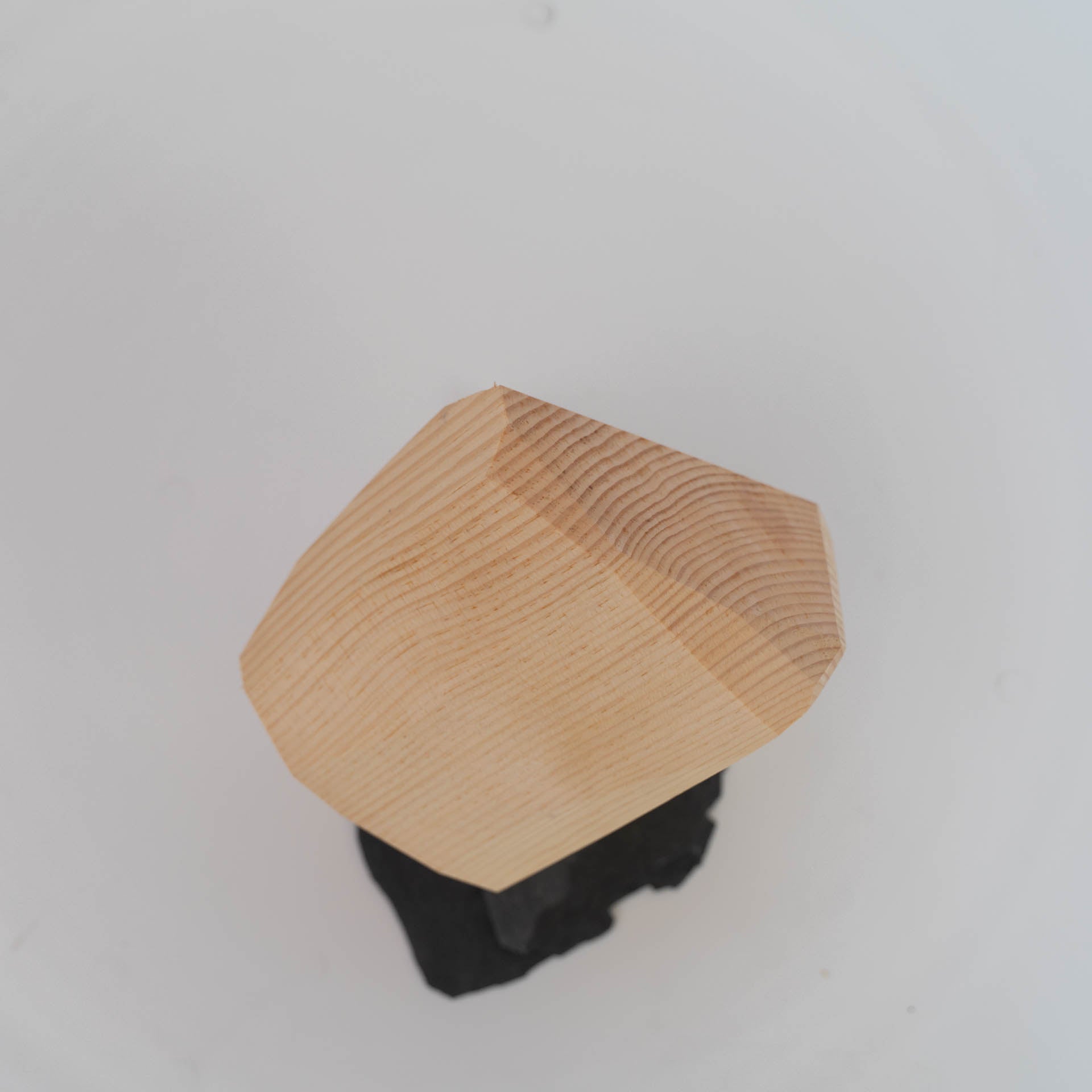 The low-concentration of bournyl acetate released from this block object calms your brain and soothes you after a hard day's work. The block has a polyhedral shape to facilitate the volatilization of the natural component, bornyl acetate, and each side is finished with a planer to facilitate the release of the chemicals from the wood.