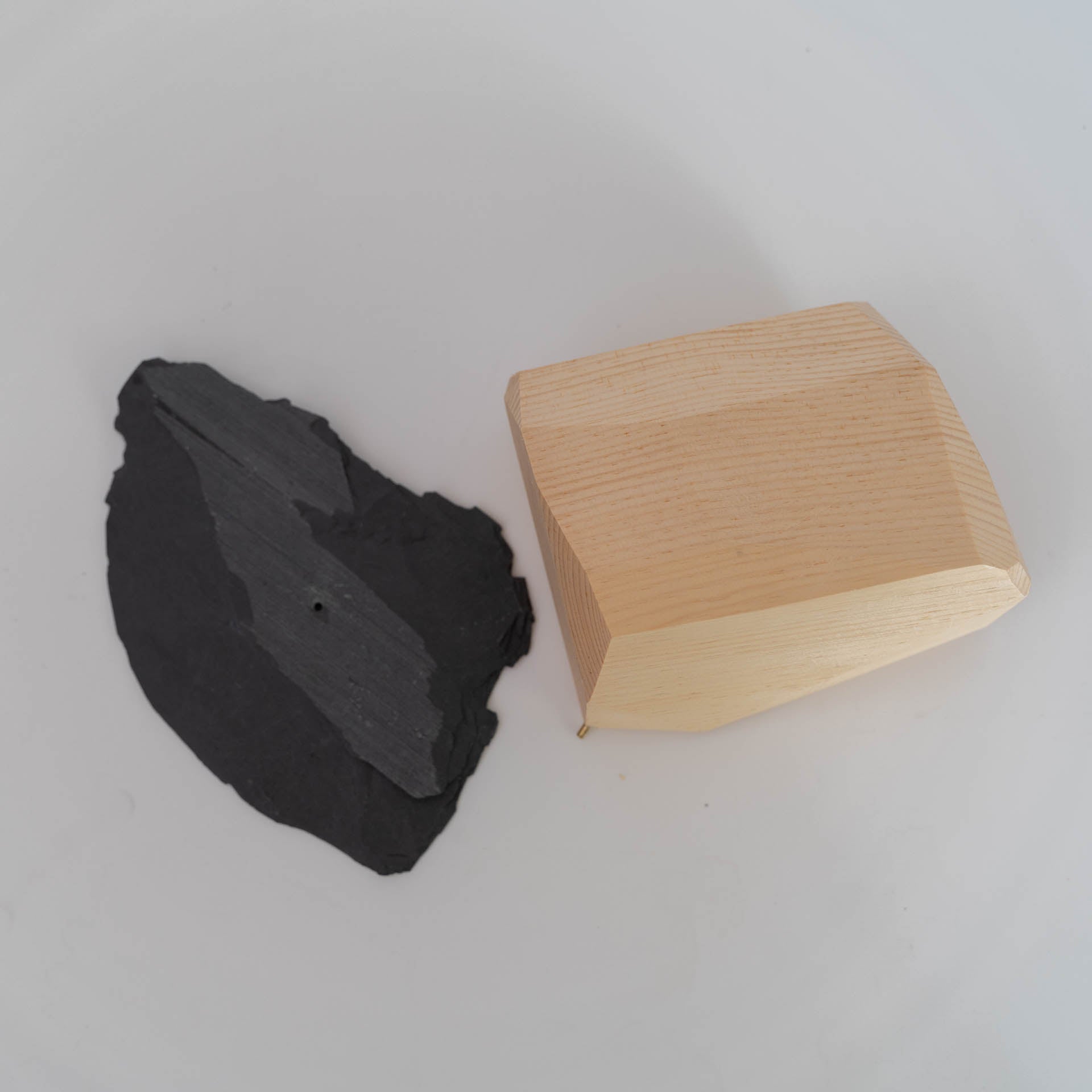 素材:飛騨高山産ヒメコマツ、粘板岩ベース、真鍮ピン