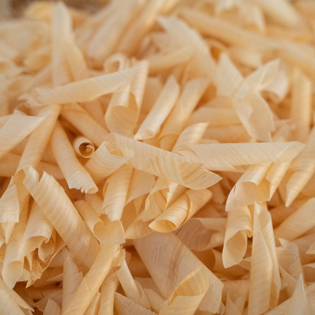 ヒメコマツは5本の針状の葉を持つマツの仲間で、五葉松とも言われる日本固有の樹木です。ヒメコマツが持つ酢酸ボルニルという揮発成分には、睡眠の質を改善したり肌質を改善する効果が認められています。カンナによって削られた削り華は、天然成分・酢酸ボルニルを適度に揮発するため脳を沈静化させる効果が高く、睡眠を優しくサポート致します。